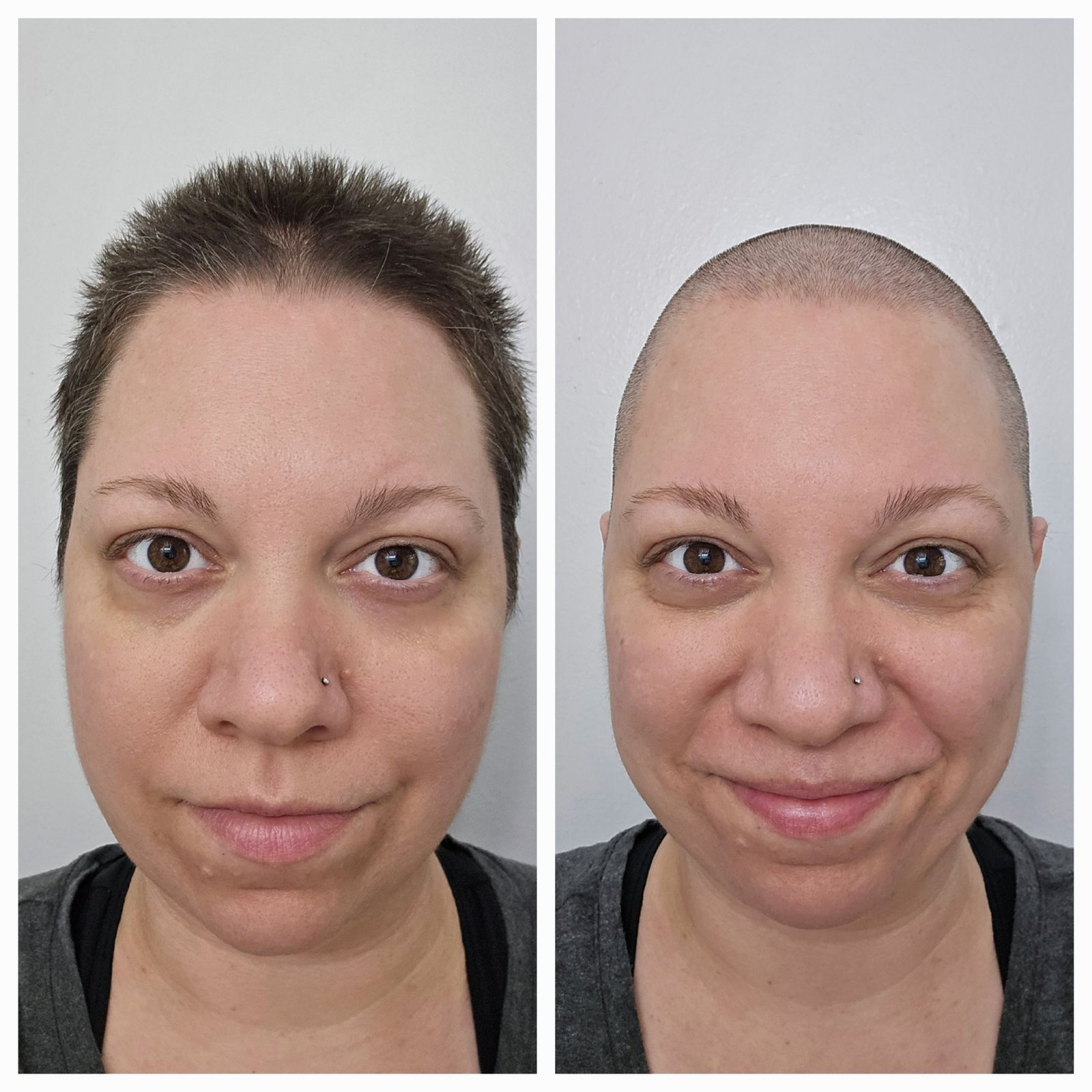 Today I did something I do infrequently because it takes so much energy and causes me pain — I showered! But before that, I buzzed my hair off.